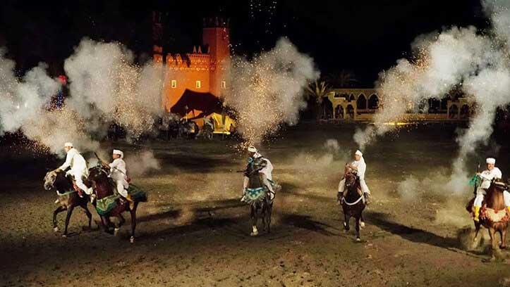 Por la tarde volvemos hacia Marrakech donde duchamos y descansamos un poco y luego iremos para cenar todos juntos en un restaurante con show y fantasía.